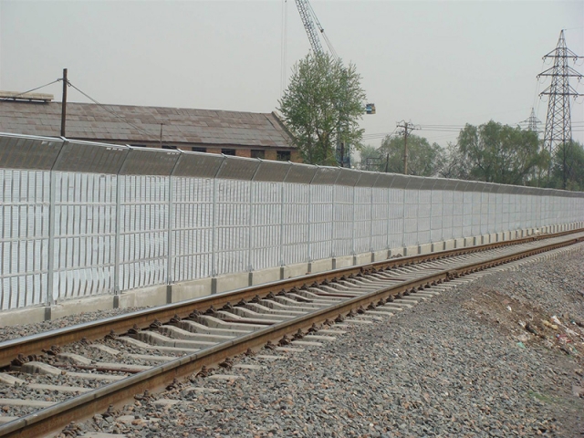 鐵路聲屏障由鋼結(jié)構(gòu)立柱和吸隔聲屏板兩部分組成,立柱是聲屏障的主要受力構(gòu)件,它通過螺栓或焊接固定在道路防撞墻或軌道邊的預(yù)埋鋼板上;吸隔聲板是主要的隔聲吸聲構(gòu)件,它通過高強(qiáng)彈簧卡子將其固定在H型立柱槽內(nèi),形成聲屏障。聲屏障的設(shè)計(jì)已較為充分地考慮了高架高速道路、城市輕軌、地鐵的風(fēng)載、交通車輛的撞擊安全和全天候的露天防腐問題。它外形美觀大方,制作精致,運(yùn)輸、安裝方便,造價(jià)低,使用壽命長(zhǎng),特別適用于高架高速道路和城市輕軌、地鐵的防噪聲使用,是現(xiàn)代化城市理想的隔聲降噪設(shè)施。