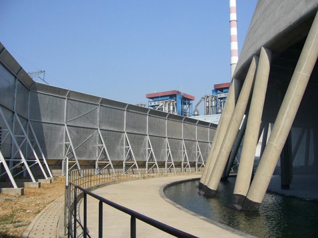 冷卻塔聲屏障采用混合型聲屏障,頂部為吸聲單元,以下部分為隔聲單元。合理確定聲屏障的長(zhǎng)度和高度后,可獲得10-25dB(A)的降噪量。